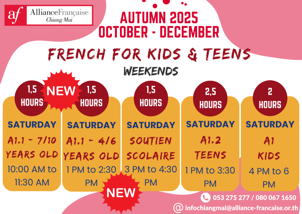 Contact us today at infochiangmai@alliance-francaise.or.th to find the perfect course for your child.
