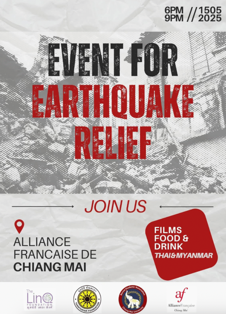 Tout au long de l’année, l’Alliance Française de Chiang Mai propose une programmation culturelle riche et variée, mettant à l’honneur la diversité des cultures francophones et la création artistique sous toutes ses formes. Projections de films, concerts, expositions, conférences, ateliers ou festivals : nos événements passés témoignent de notre engagement en faveur du dialogue interculturel et du rayonnement de la culture française en Thaïlande.