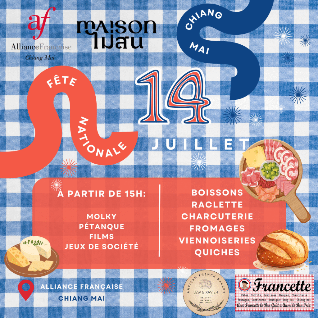 Throughout the year, the Alliance Française de Chiang Mai hosts a rich and diverse cultural program celebrating French-speaking cultures and creative expression in all its forms. From film screenings, concerts, and art exhibitions to talks, workshops, and festivals, our past events reflect our commitment to cultural exchange and community engagement.